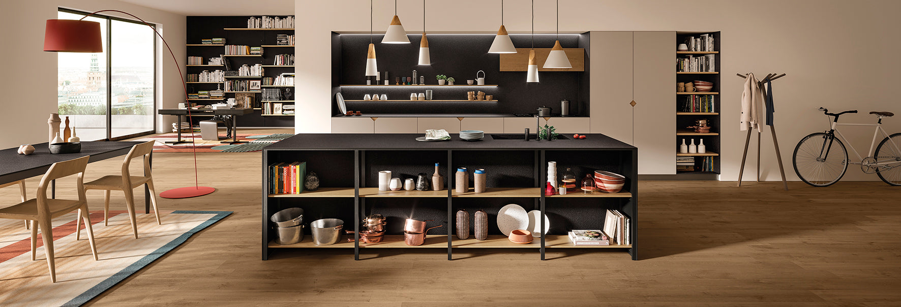 Black stone-effect porcelain slabs for indoor and outdoor spaces. Inspired by the characteristic South African stone, Nero Zimbabwe brings great intensity and homogeneity to any surface.